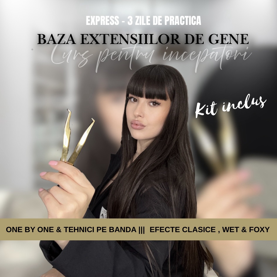 2,200.00leiCURS DE BAZA EXTENSII DE GENE - EXPRESS Un curs complet & complex destinat celor care doresc sa construiasca o cariera de succes in domeniu . •teorie online & fizic •practica pe manechin & sesiuni de practica pe modele umane • tehnici multiple pentru volum (2-4D ) one by one & tehnici pe banda • straturile & algoritmi de lucru pe straturi • personalizarea efectelor clasice + wet & foxy •alegerea corecta a produselor • aplicarea corecta pentru aspect & retentie ideale •promovare in online - fotografia & editarea • kit complet inclus • suport nelimitat dupa finalizarea cursului